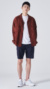 Outfit: Áo thun trơn, quần jean slim-fit, áo khoác bomber hoặc sơ mi khoác ngoài.